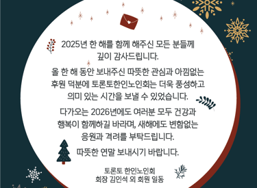 The Korean Senior Association of Toronto supports cultural, welfare, and educational activities to enhance the quality of life for Korean seniors, strengthen community bonds, and promote intergenerational communication and respect.