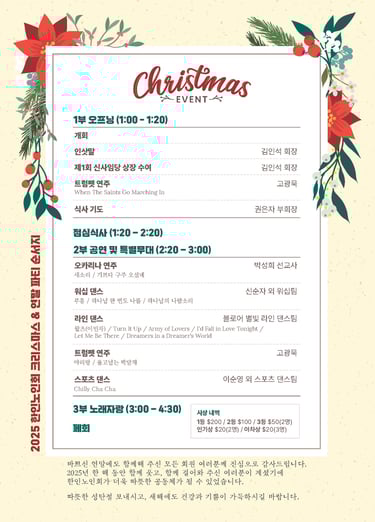 한 해 동안 한인 노인회에서 진행하는 이벤트들 입니다.